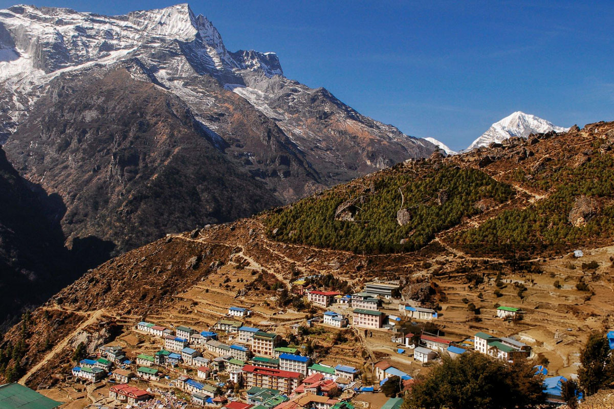 There are several switchbacks en route, and you will be crossing swaying metal bridges built over thundering glacial rivers and decorated with colorful prayer flags. After crossing the Hillary Bridge (the highest and longest bridge in Khumbu), you will get your first glimpse of Mount Everest. A stroll away from the viewpoint, lies Namche, the center of the Sherpa homeland.