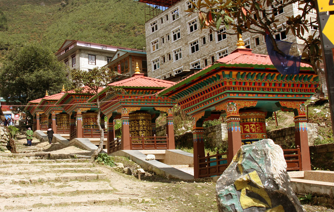 The bustling town is carved on the face of a mountain, like an amphitheater. Fountains and traditional gates mark the entryway to the town. Climb up a concrete staircase to reach the teahouse, where you will spend the night. You can enjoy stunning views of Thamserku, Kusum Kanguru, Khumbila (the guardian mountain of the Sherpas), and Kanteg a from the porch of your teahouse. Have a sumptuous dinner and enjoy a restful night.