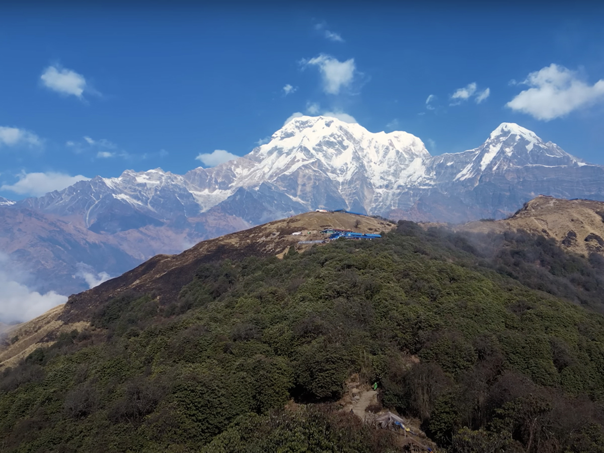 After landing in Pokhara, you will board a private vehicle and drive towards Kande, which lies about 28 kilometers away. The road to Kande is smooth, and the drive is comfortable. You will enjoy picturesque views of mountains, green hills, and terraced farms. Mesmerizing views of Annapurna South and Fishtail Peak can be seen stretching across the horizon from the highway. On reaching Kande, you will start your hike to Pitam Deurali via Australian Camp and Pothana. The trek begins with a steep descent and a levelpath to Goldanda. Later, the trail follows a long stone staircase. It's a steep climb. After about an hour (it can take longer if your pace is slow), you will reach Australian Camp.